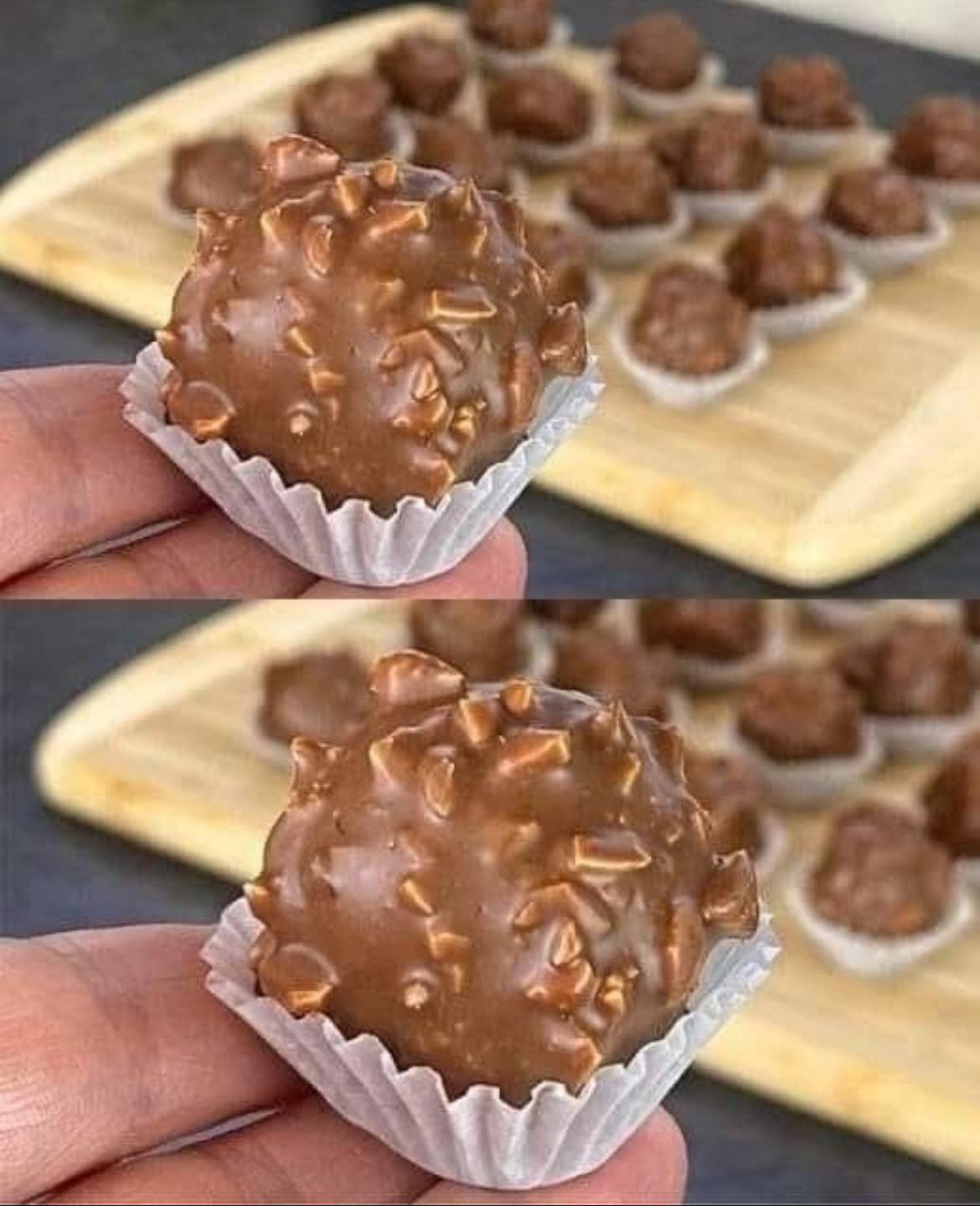 Disse sprø hasselnøtt-sjokoladetrøflene er glatte, nøtteaktige og dekket av en deilig sprø knas – akkurat som din favoritt premium sjokoladeplate. Med lag med kremet sjokolade, ristede hasselnøtter og et hint av vaffelknas, er de perfekte for en hjemmelaget gave eller en elegant snack.